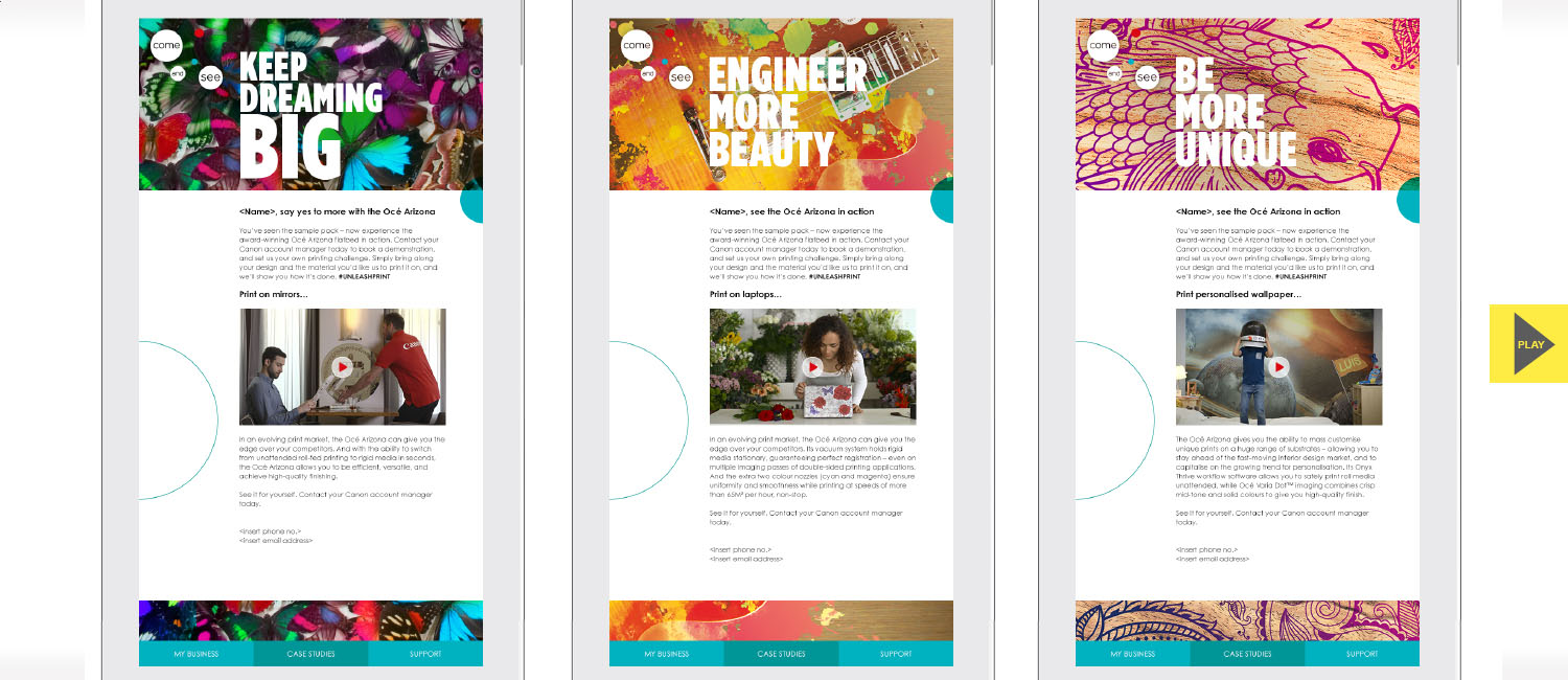 It has manifested beyond a pan-european campaign into company philosophy uniting canon’s complex and disparate print businesses, product-lines and audiences. From enormous flat beds that can print on sheet glass, to automated billing systems, to office printers. The campaign is strikingly different visually and attitudinally from the competition and has already made a huge impression on customers, employees and Canon business leaders.